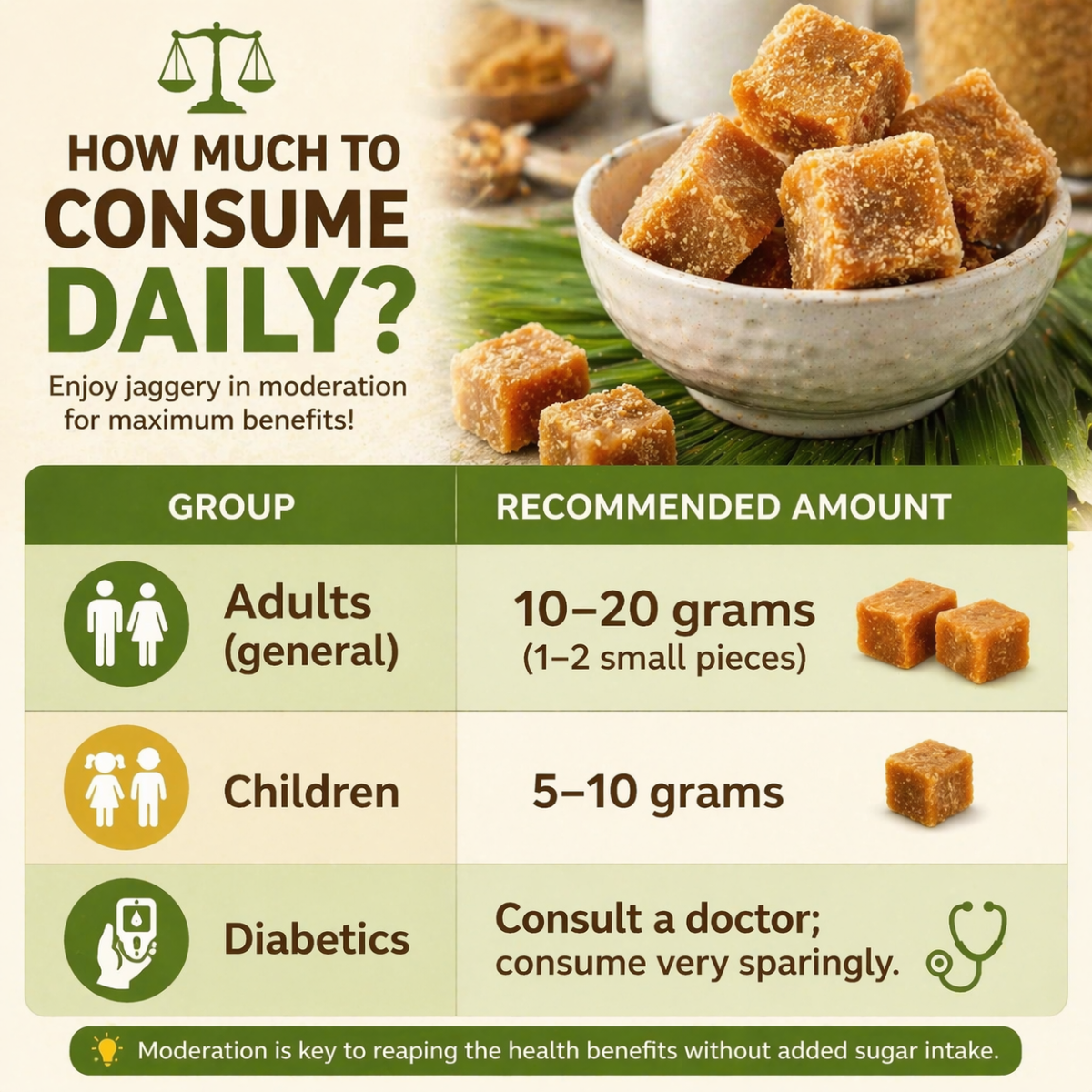 Jaggery blocks is a natural sweetener with minerals and a lower glycaemic impact than healthier alternatives to sugar, but people with diabetes should consume it in moderation.