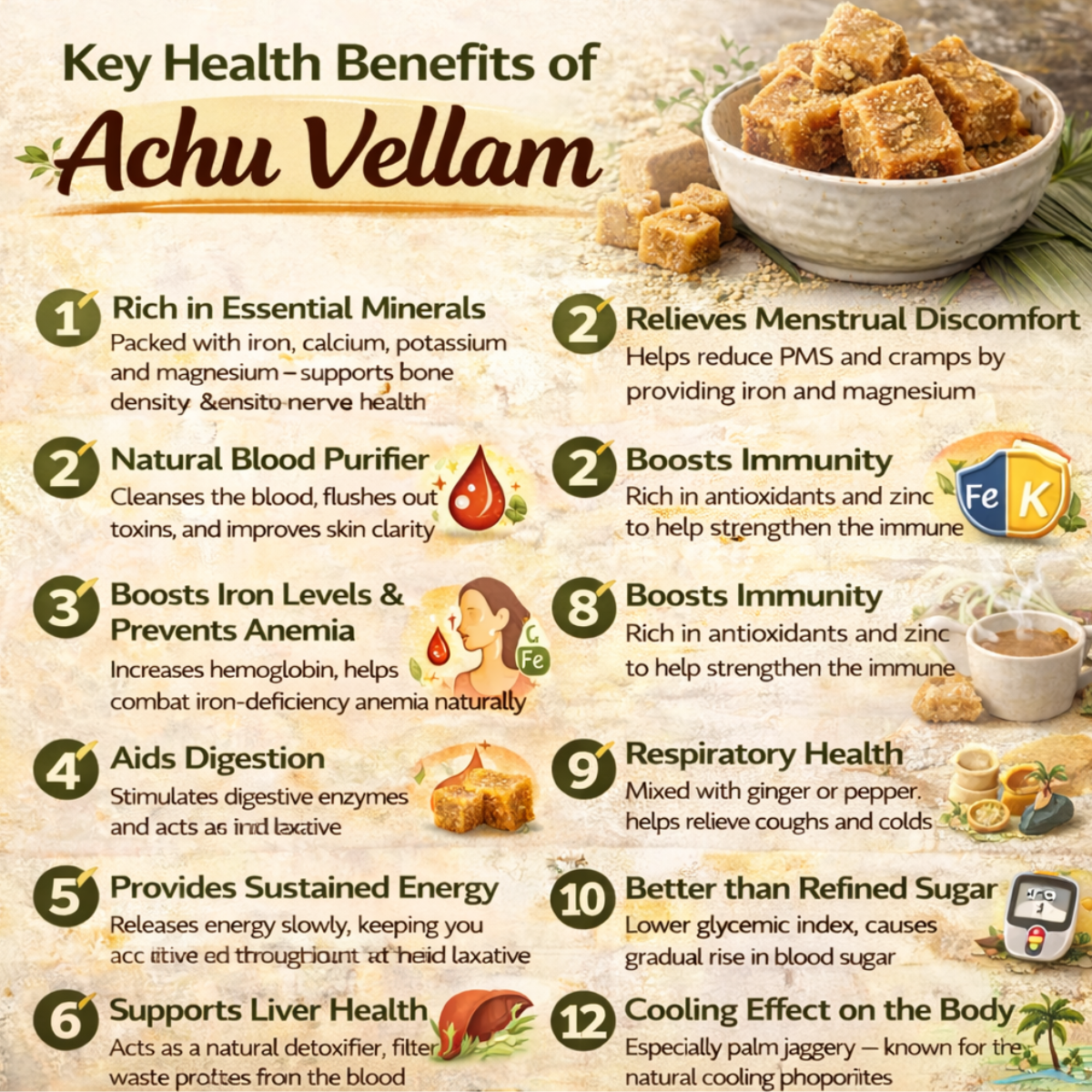 Whether you explore Achu Vellam in local markets or prefer Achu Vellam online purchase, always check for purity and quality. With MyVNaturals, you get the best Achu Vellam price without compromising on authenticity.