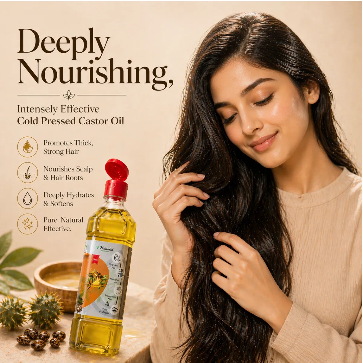 For hair growth → cold-pressed Jamaican Black Castor Oil or pure cold-pressed castor oil works best.