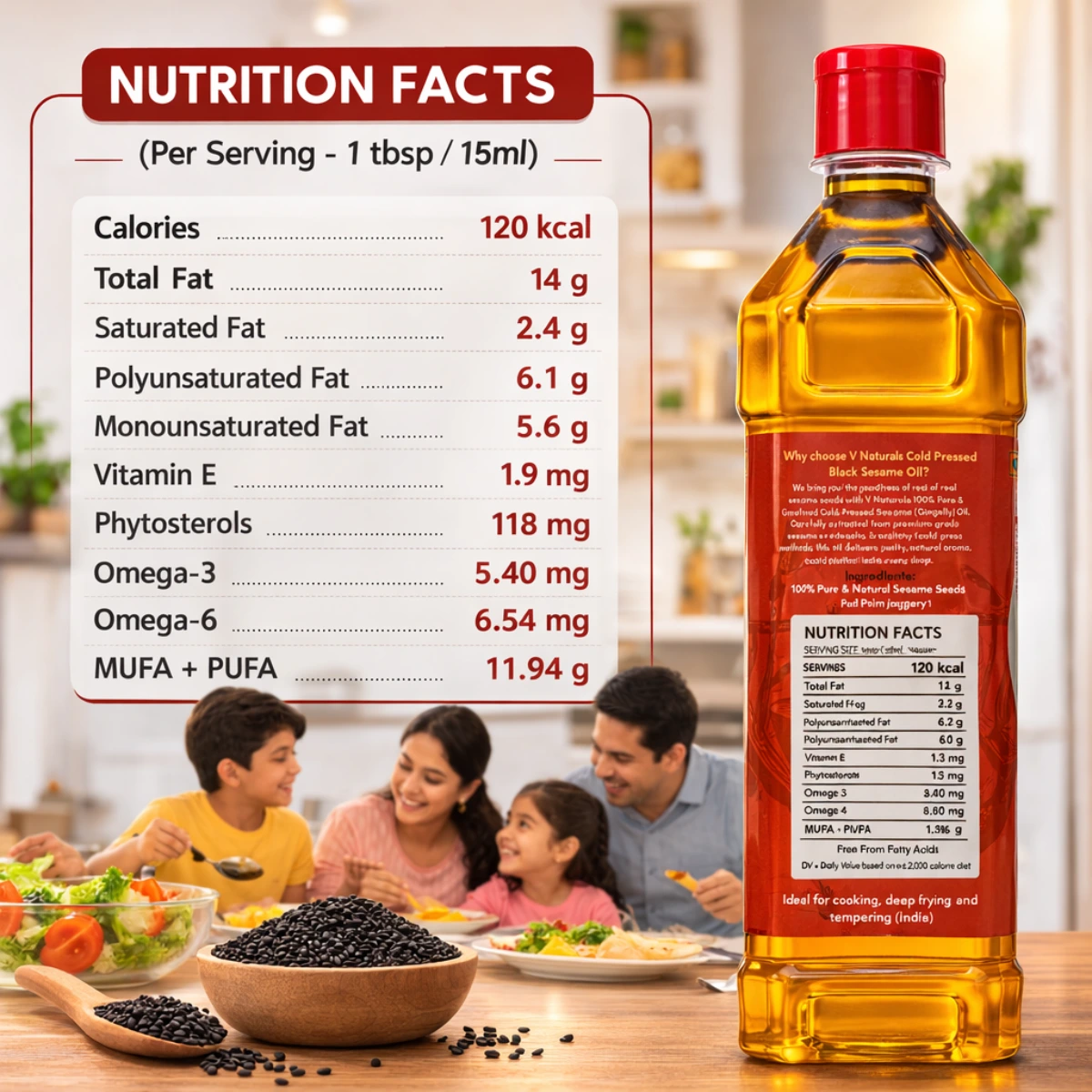 Bring home the purity of Cold Pressed White Sesame Oil by V Naturals. Perfect for your family’s cooking & wellness needs.